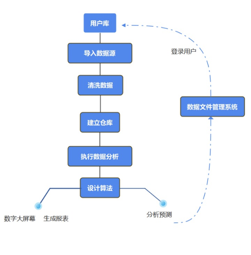 本项目依托于FineBI、DataA的数据分析结构,基于马尔可夫决策过程、策略迭代,通过随机森林、PAC模型等机器学习算法和模型,对数据进行清洗、整合、分析并学习生成最优曲线,并将学习所得的优化模型存储到相对应的数据银行中,并且可以通过用户存储的数据和实际变更情况,对项目中的模型和算法进行训练和优化,是一款能够自主更新优化的成长式大数据智能分析预测平台。