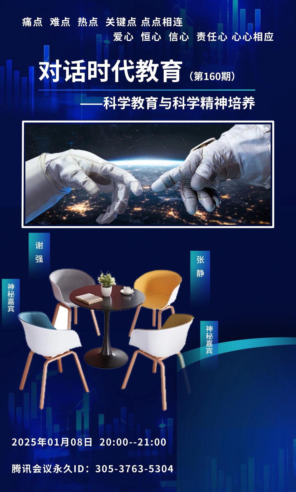 2025年1月8日晚8点,敬请关注对话时代教育(第160期)——科学教育与科学精神培养。