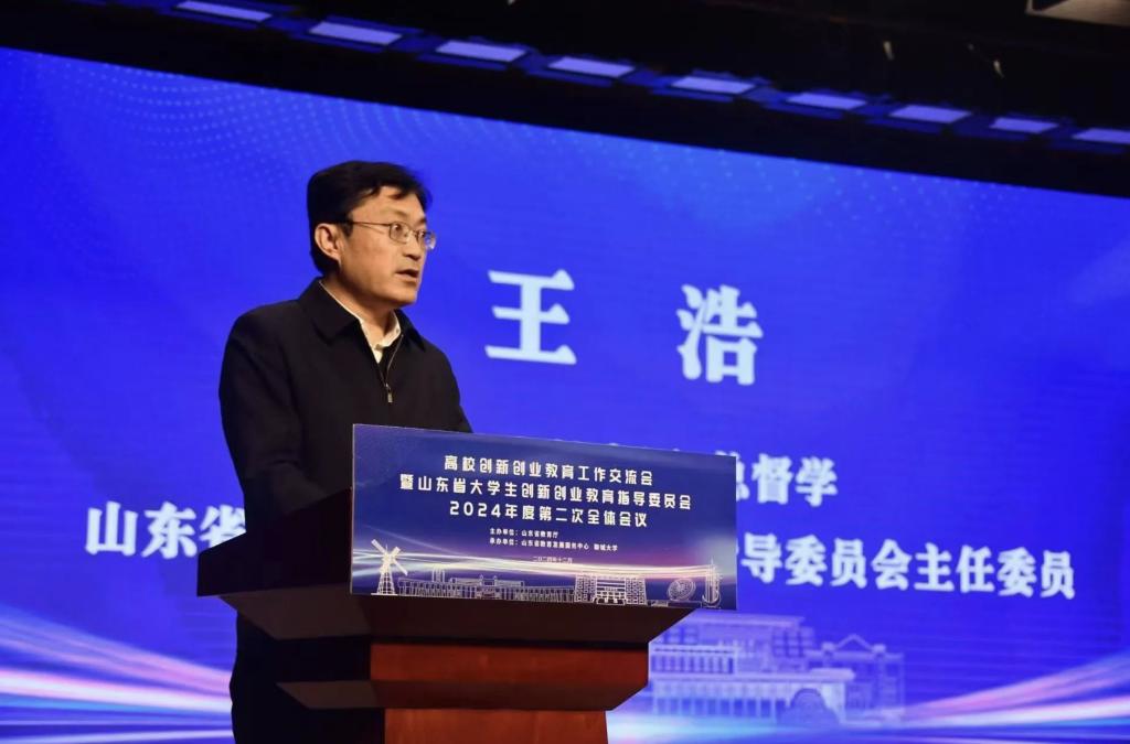王浩在致辞中指出,建设教育强国,龙头是高等教育;高等教育综合改革,创新创业教育是突破口,以创新能力培养为导向的高等教育人才培养范式变革是未来一段时间高等教育发展的重要主题。他强调,我们要认真学习领会习近平总书记10月16日给中国国际大学生创新大赛参赛学生代表的重要回信精神,进一步发挥创新创业教育在高等教育综合改革、人才培养范式变革中的引领作用。一要强化创新创业教育顶层设计,把创新创业教育作为推进科技自立自强、教育科技人才一体发展的重要制度设计,作为拔尖创新人才自主培养的重要渠道,贯穿教育教学、人才培养全过程。二要优化高校创新创业教育生态,着力加强校级层面的创新创业教育工作整体设计,聚焦创新创业教育课程体系建设、教学方式改进、师资能力提升、评价激励机制等方面,营造鼓励支持师生创新创业的良好氛围,激发创新创业创造热情。三要加快高校人才培养范式变革,实现从“以知识为中心”到“以创新能力为中心”的范式转变,打造形成“一校一特色”的创新创业教育人才培养格局。四要深化大学生创新大赛赛事改革,加强大赛与人才培养联动,更加注重项目质量、更加突出大赛的育人功能,打造山东创新创业赛事品牌,为培养更多具有科学精神、创新思维、创业能力的高素质人才,为现代化强省建设作出新的更大贡献。
