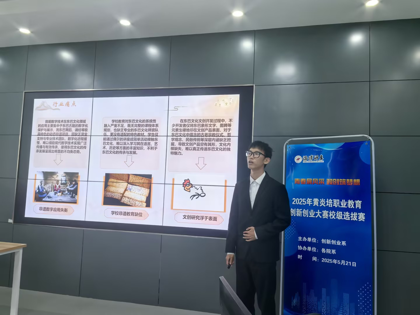 2025年5月21日,淄博市2025黄炎培职业教育创新创业大赛(学生组)校级选拔赛在我校文津楼318实训室成功举行。来自8个院系的27支参赛团队同台竞技,以创新为笔,以实践为墨,充分展现了职教学子的青春风采与创业潜能。 本次大赛以 “青春展风采,双创筑梦想” 为主题,传承黄炎培先生“使无业者有业,使有业者乐业”的职教理念,聚焦人工智能、数字化等前沿技术领域,旨在发掘和培养兼具创新精神与实践能力的高素质技能人才。 选拔赛严格对标市级赛事标准,流程严谨高效。参赛项目覆盖智能制造、智慧农业、文化创意等多个领域,充分彰显了职业院校在服务产业转型升级中的技术赋能价值,项目内容多元,职教特色鲜明。 赛后,专家评委对参赛项目的创新性、团队表现给予了高度评价,并提出了中肯的意见与建议。本次大赛不仅是一场创新创业的精彩盛会,更是学校人才培养成果的集中展示。参赛学生通过现场展示,锻炼了创新思维、实践能力、团队协作能力。大赛的优胜者将代表我校参加淄博市黄炎培职业教育创新创业大赛。 传承百年职教精神,激发双创时代活力。让我们共同期待晋级团队在市赛舞台上的精彩表现!